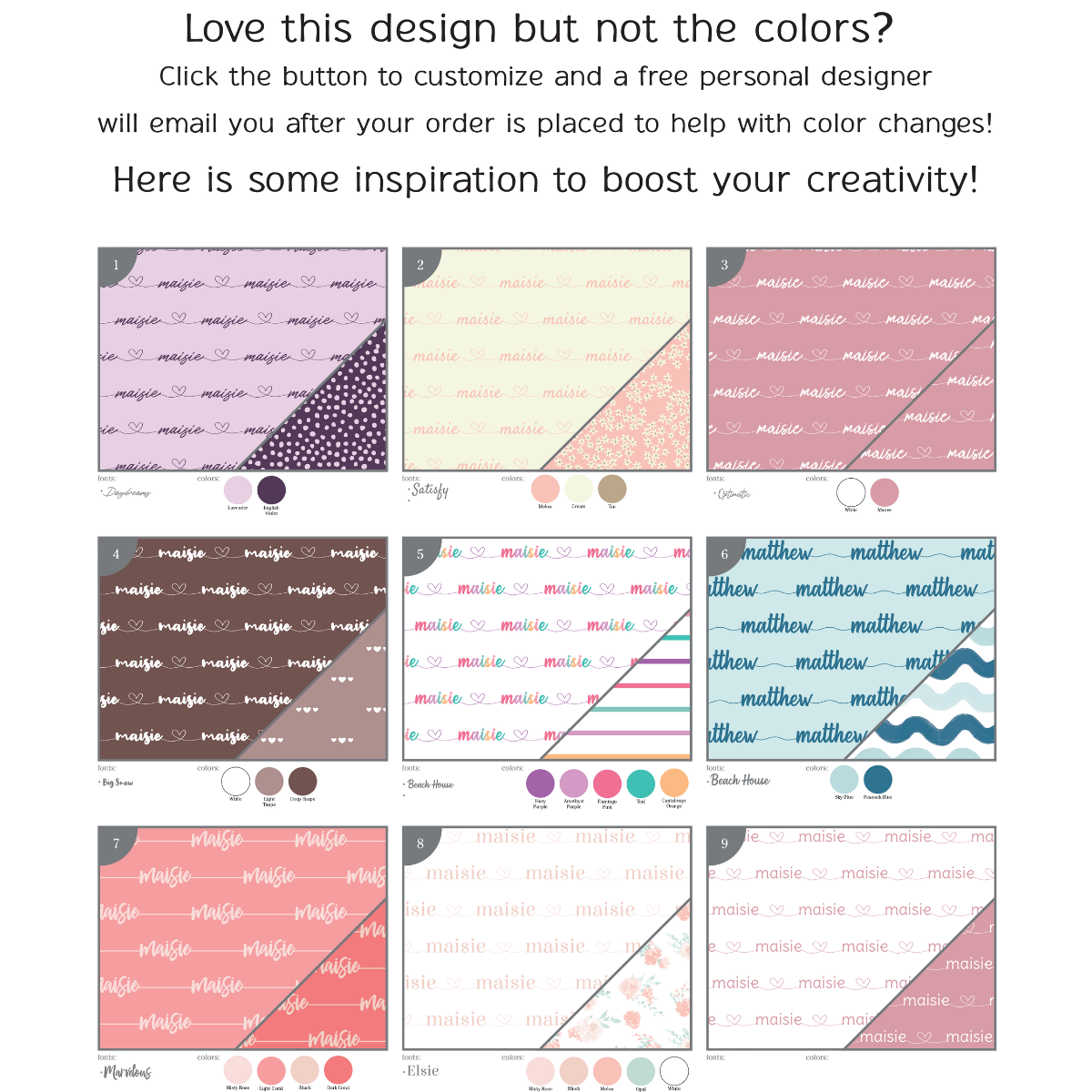 ***If you are shopping from our Facebook Shop, a designer will reach out to you via email within 24-48 business hours. You can give her your personalization details at that point.***