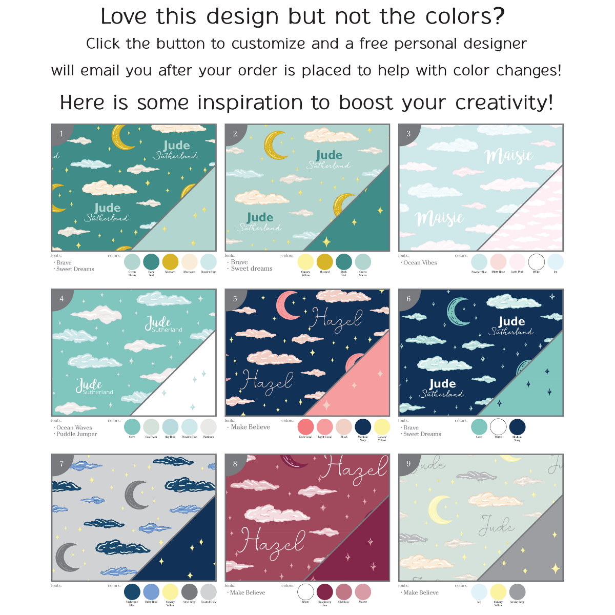 At Audrey & Bear we specialize in customizing the fonts and colors in all of our designs to match your style. Click the box in this listing and a designer will reach out to you via email after you purchase and together you can create your own masterpiece.