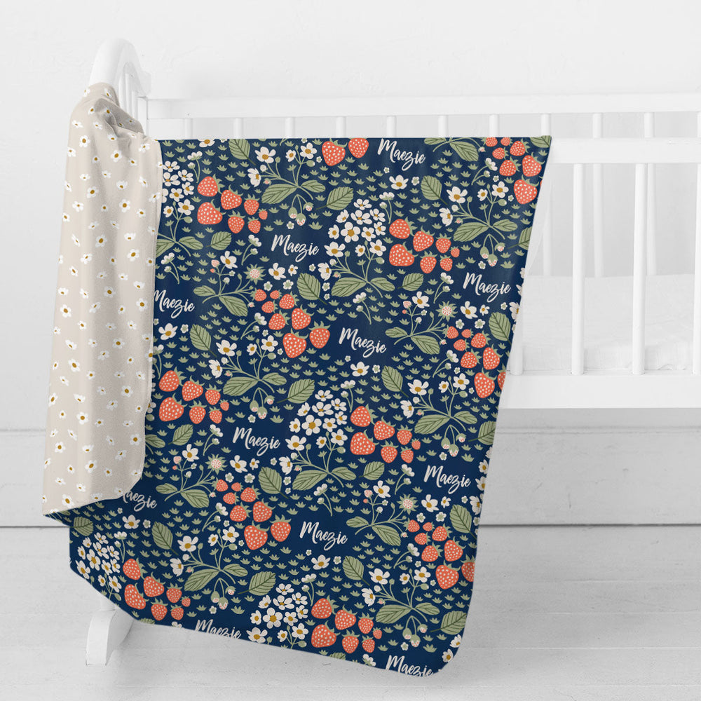 Personalized Swaddle & Hat Set | Strawberry Floral