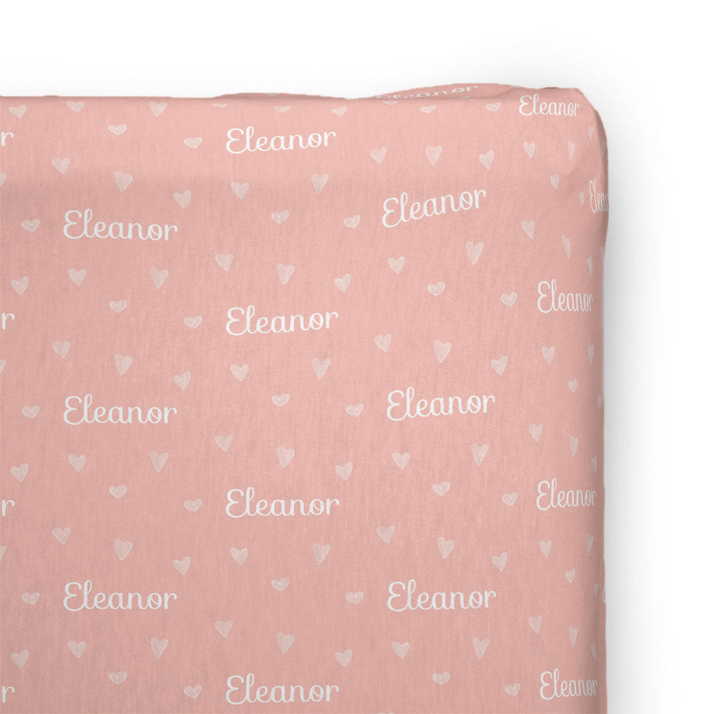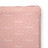 Audrey & Bear personalized changing pad covers are soft, stretchy and so easy to use. Simply apply the changing pad cover to one side of the changing pad and then stretch it across to the other side. The deep pockets allow the cover to generously protect the changing pad and make for easy accessibility for washing. Each personalized cover is generously sized at 17” x 33”. Add your changing pad cover to one of our premium personalized crib sheets to create a matching set!